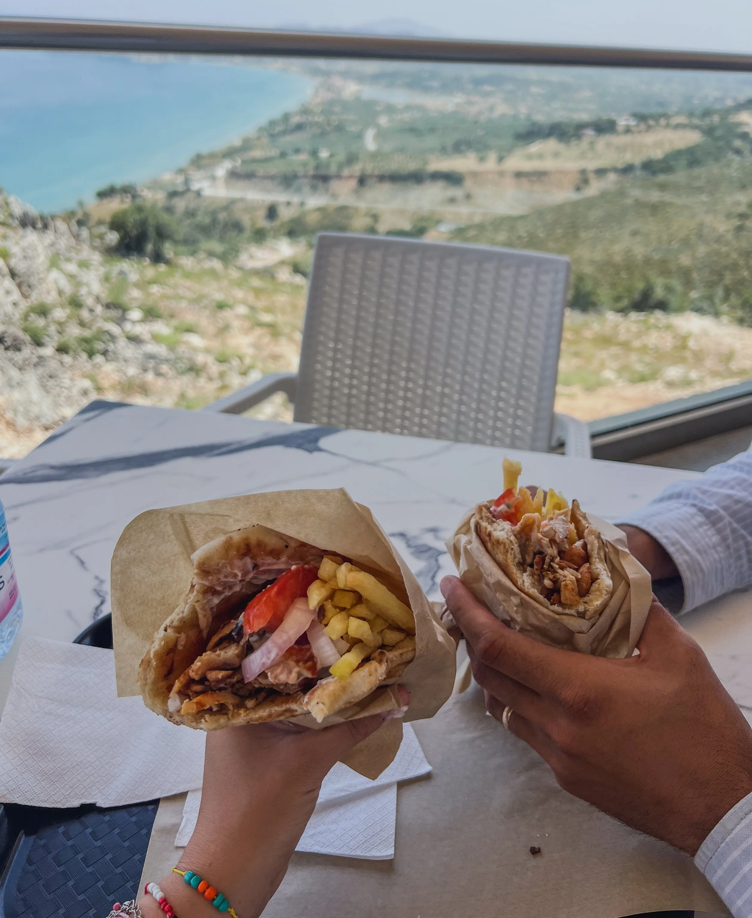 Our favorite restaurant for a quick bite was a cliffside family owned food spot called Mr.Rock. They serve everything from coffee, ice cream and gyros. From the tables you have a view of the cliffs and ocean. Mr. Rock is very affordable especially compared to the tourist spots. They also have high quality ingredients.